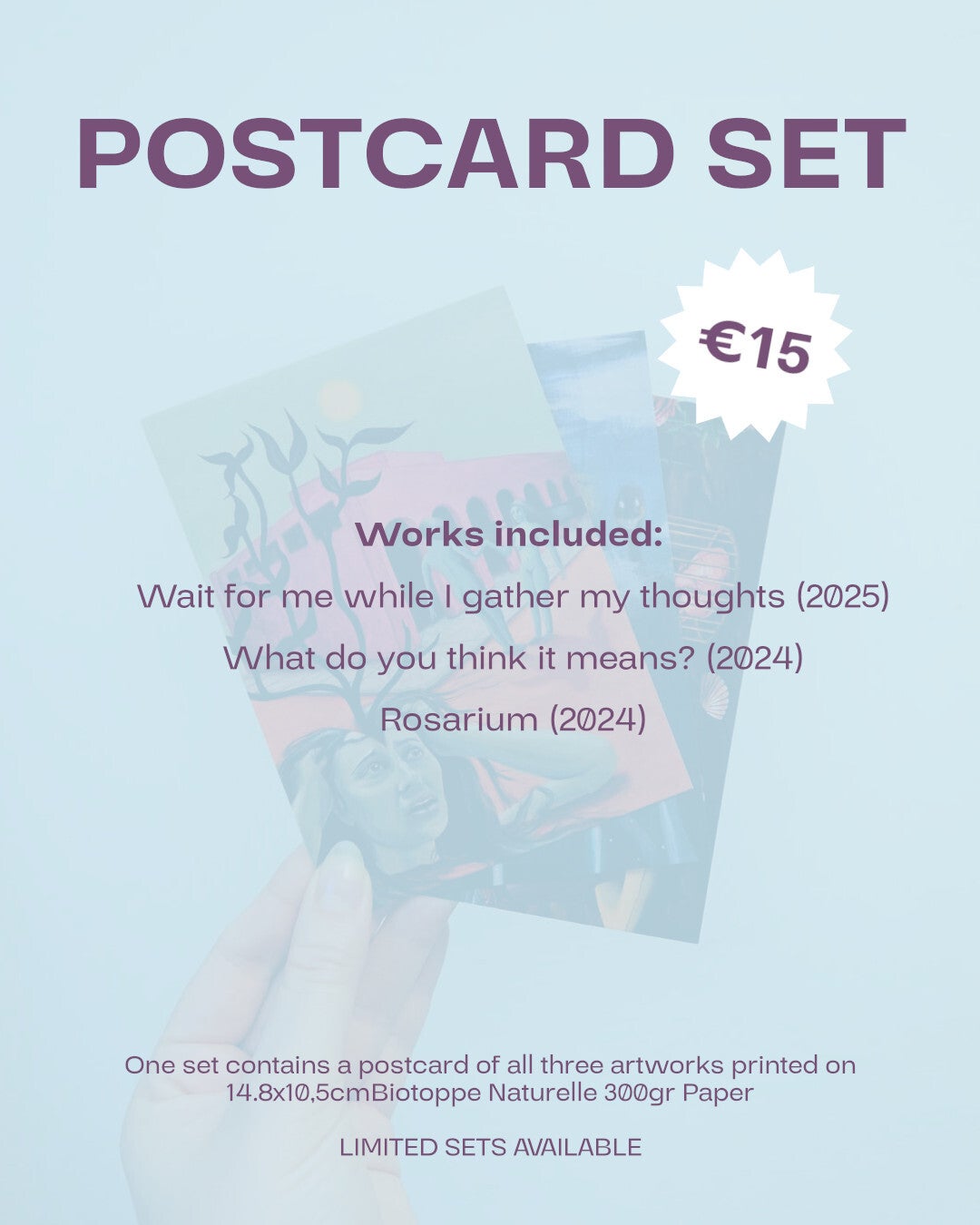 One set contains a postcard of all three artworks printed on 14.8x10,5cmBiotoppe Naturelle 300gr Paper